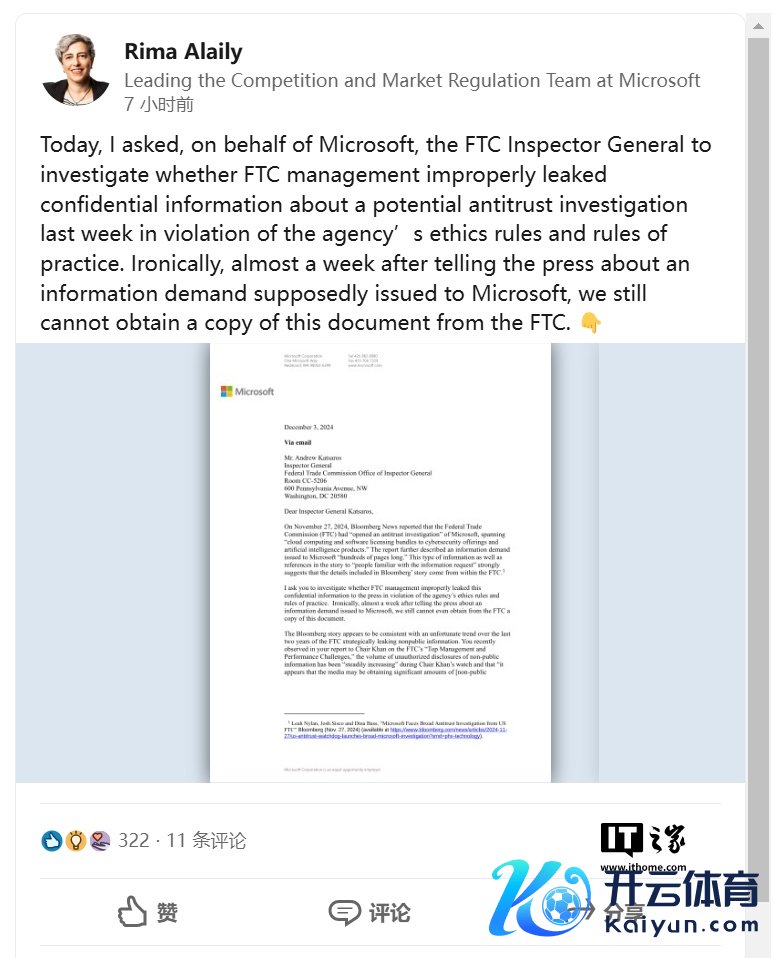 IT之家 12 月 4 日音尘,微软条款联邦生意委员会(FTC)的监察长走访该机构贬责层是否欠妥浮现了对其进行反独揽走访的音尘,并公开走访效果。
