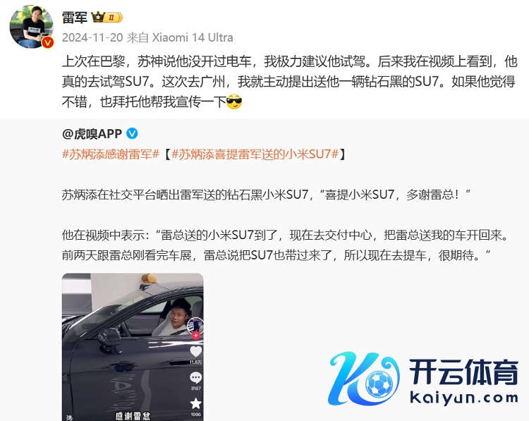 就在今天,极氪官方告示,亚洲飞东说念主喜提极氪009,成为了极氪009车主!本该这亦然一件常见的明星与汽车品牌联动事情,然则由于前不久,雷军送了一台钻石黑的SU7给苏炳添,而小米与极氪属于竞争干系,激勉公共热议。