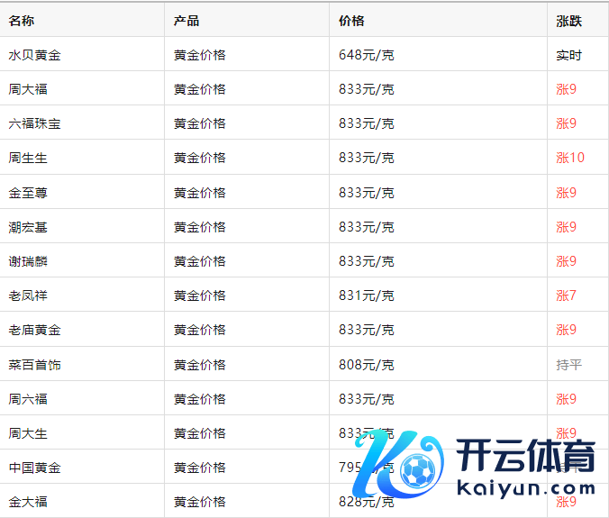 各大品牌金店黄金零卖价钱一览