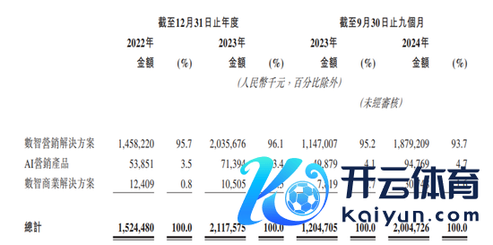 从业务来看,东信营销科技93%以上的收入由数智营销处治决策带来。而其说的“中国最大的AI营销公司”的AI营销居品,在请问期内为公司带来5385.1万元、7139.4万元、9476.9万元的收入,仅占公司收入的3.5%、3.4%、4.7%,仅仅很小的一部分。公司其余收入来自数能力业处治决策。