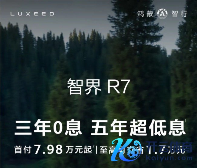 鸿蒙智行旗下智界品牌,又有新车型加入促销阵营。3月1日,鸿蒙智行晓示,智界R7推出“3年0息、5年低息”的限时金融计谋,首付7.98万元起,最高可省1.7万元。