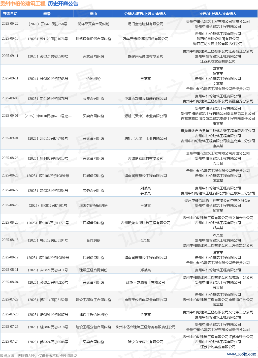 本站音问,凭证天眼查APP显现体育游戏app平台,近日公布了一则贵州中柏伦建筑工程有限公司行动被告/被上诉东说念主的开庭公告,小心践诺如下: