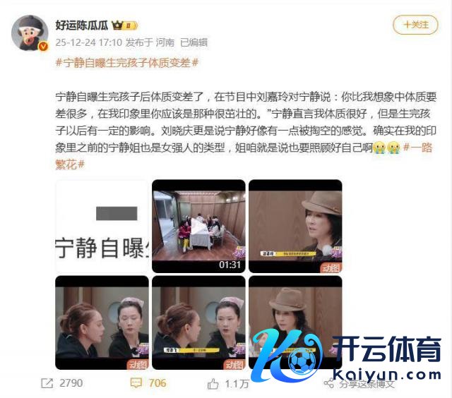 宁静的这番"自曝",与其说是在怀恨,不如说是一次勇敢的"看见"。它让一种时常被"为母则刚"的赞成所袒护的、静默的身体损耗,被摆到了台前。当社会俗例于聚焦新人命的容许时,这位纯厚的女明星用裹紧的外衣和的确的叹息,指示东说念主们也去望望那份容许背后,母亲们悄然交流的体质与长期重置的"健康基线"。这场对话莫得谜底开云体育,但它至少让许多千里默的"怕冷",被听见、被证明了。
