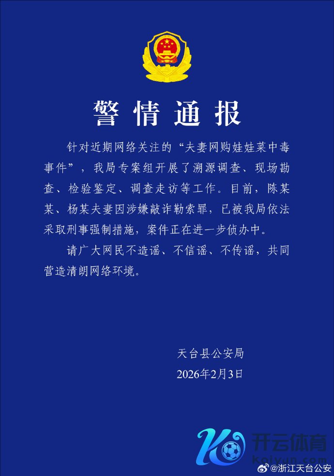 警方通报:网购娃娃菜中毒配偶涉敲诈胁迫罪,已被秉承刑事强制顺次警方通报:网购娃娃菜中毒配偶涉敲诈胁迫罪,已被秉承刑事强制顺次